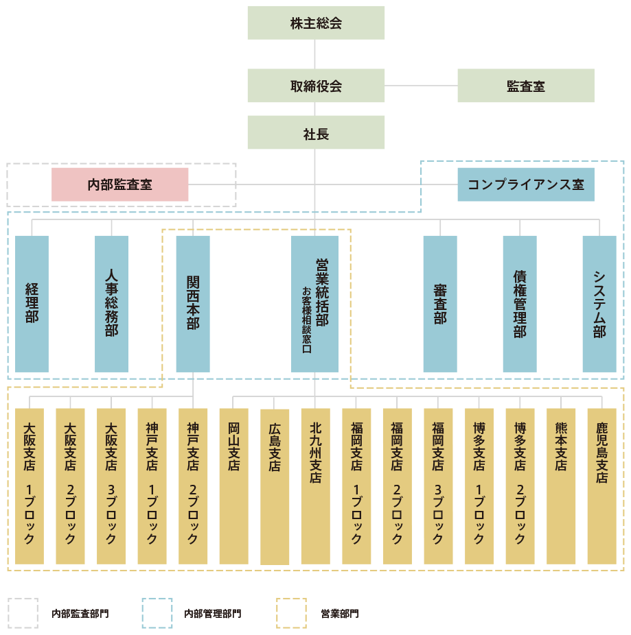 | 営業拠点 | 東京支店、大阪支店、神戸支店、広島支店、北九州支店、福岡支店、博多支店、熊本支店、鹿児島支店 計9拠点支店情報を見る |