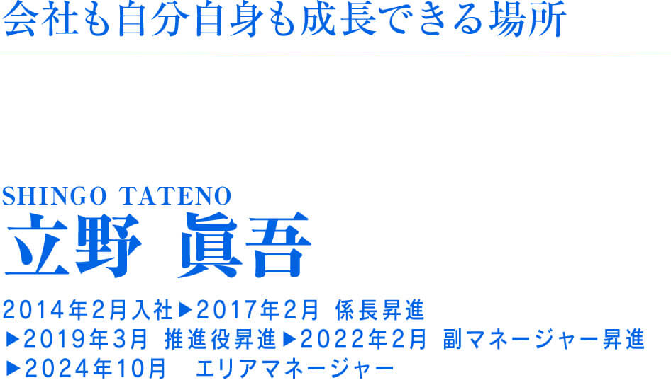 営業活動を通して、先輩方から1つ1つ丁寧に教えて頂けるので、知識が増えスキルアップにつながっています。