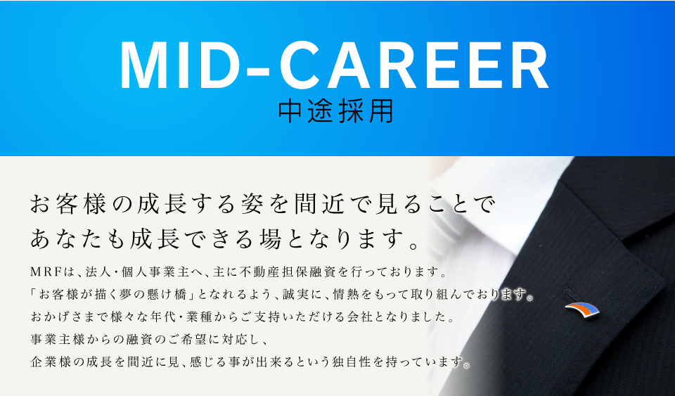 金融業界で、それも第一線で活躍されている経営者様と密接に関われるMRFを志望しました。転職を考えていた当時、MRFが不動産担保ローンで残高200億円を達成し成長し続けていた点に魅力を感じました。