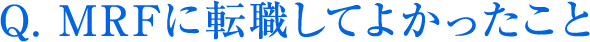 面接の時に職場内を見学させて頂いたのですが、活気があり明るい雰囲気を感じ、企業の実績が右肩上がりで安定していると思いましたので、MRFへの入社を決めました。また、福利厚生面も充実しており、土日祝日休みでボーナスもあることも後押しとなりました。