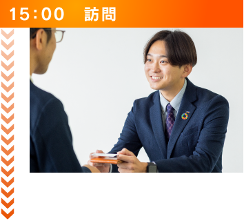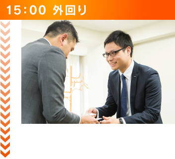 対面で営業する外回りは、経験の少ない私達にとって、今後の契約のための絶好の機会です。対面することによって、 お客様の真意が計りやすく、選別がつけやすいため、週に1、2回ほどこの時間を取り入れます。 また実際、初対面のお客様で契約になるケースも多いので有効な営業手段だと考えています。