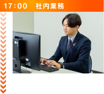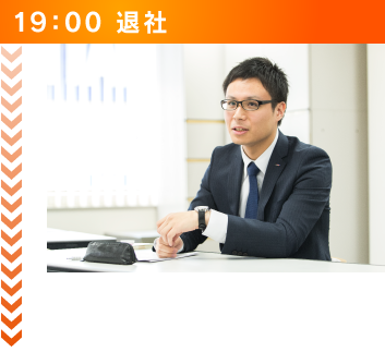 終業時の社内ミーティング後、どのようにすればもっとお客様にとって良い話ができたのか、どのようにすればもっとアポイントを取得できたのかを振り返ります。その後は、机上の整理整頓や事務所内の後片付けを行い、帰宅します。帰宅後は時間が多くあるので、趣味や資格の勉強など自身がやりたいことが十分に行えます。