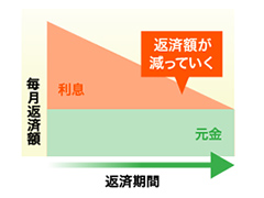 元金を返済回数で割った金額を毎回の返済元金とし、これに利息を加えた金額を返済していく返済方式てす。