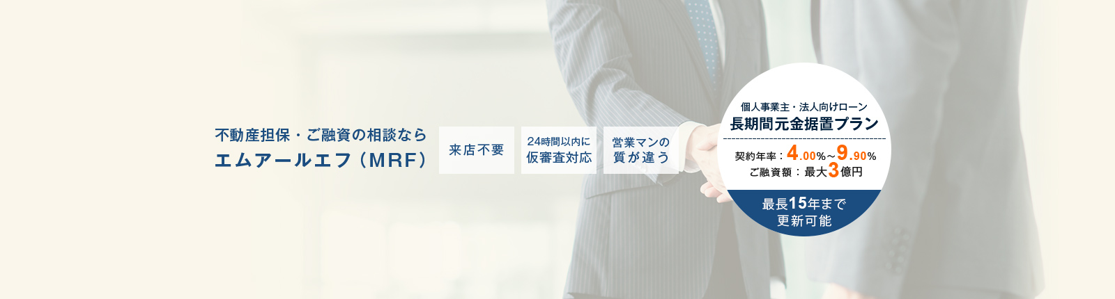 不動産担保ローン、ビジネスローン(事業者ローン)のエムアールエフ(MRF)では、